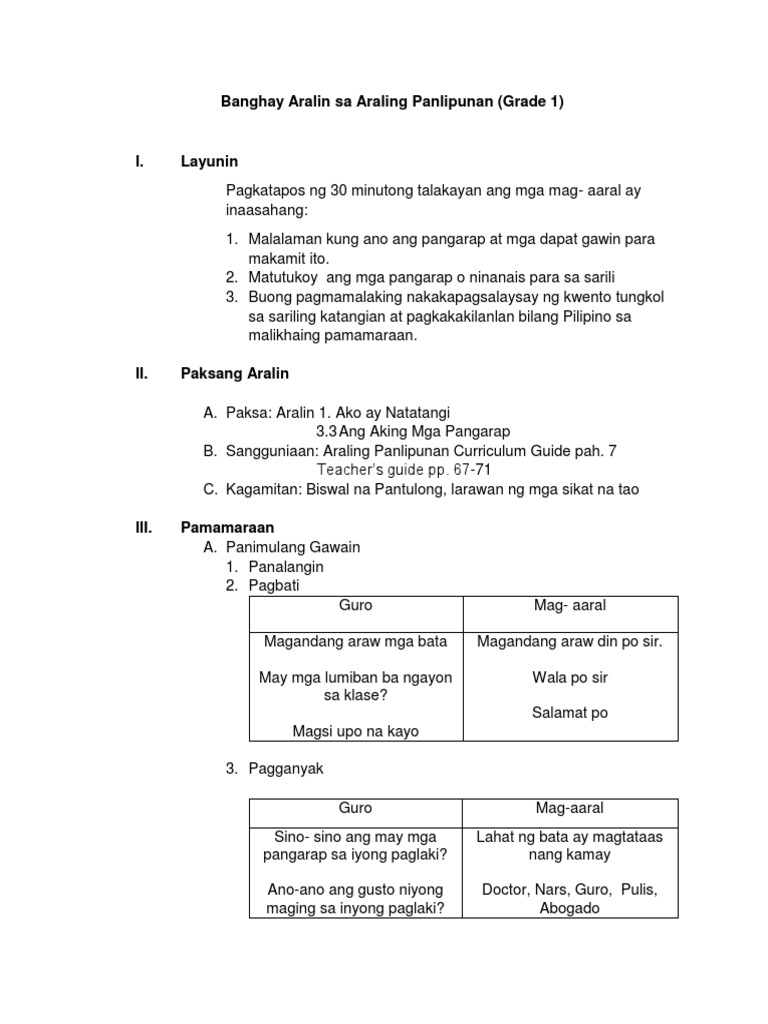 Banghay Aralin Sa Araling Panlipunan Pdf